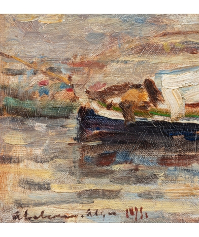 Our painting: This is one of Albert Lebourg's earliest and most sought-after works. He was in Algiers in 1875 and was already giving advice at the school of fine arts, even though he was only 27 years old. Absent from the capital and without connections to the Impressionists who participated in the first salons of this nascent movement, Lebourg was a true visionary at the time, naturally adopting a modernist touch. The material is applied in broad strokes that foreshadow Post-Impressionism.