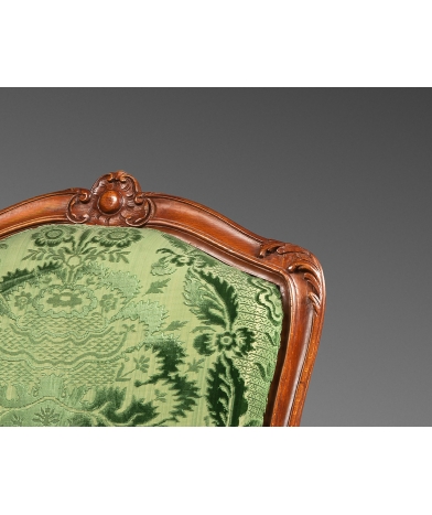These chairs bear the stamp of Louis Poussiée, about whom we have little information. This cabinetmaker, who probably died young, practiced his craft for only about ten years. As a result, his reputation is rather low compared to the quality of the few chairs we know of. We know from Pierre Kjelberg that Louis Poussiée worked with Etienne Saint Georges, who produced beautiful, well-balanced and carved pieces like ours. Pierre Kjelberg reproduced our chairs on page 673 of his book "Le mobilier français du 18ème siècle".