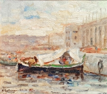 Raymond Allègre is a painter from Marseille, born and died in the Phocaean city. He is one of the best realist painters of Provence with Felix Ziem and Jean-Baptiste Olive whom he met at the Marseille School of Fine Arts, and with whom he remained very close throughout his life. Allègre continued his training at the Paris School of Fine Arts with the greatest masters, Jean-Paul Laurens, Antoine Vollon and Léon Bonnat. He leaves us landscapes of the Paris region and Normandy from this period. Raymond Allègre returned to live in Provence while continuing to exhibit at the Salon in Paris from 1880 until 1932 where he won numerous prizes and received important orders from the French state. Among other things, he participated in the decoration of the “Le Train Bleu” restaurant at Gare de Lyon by creating the “Algiers” and “Cassis” panels. In 1900, Allègre discovered Venice, which inspired a large number of paintings, and henceforth classified him as an orientalist painter as well.
