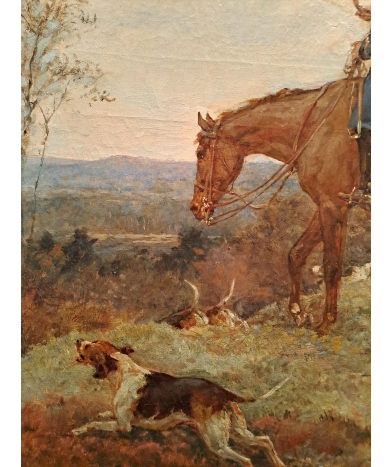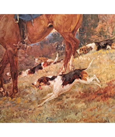 Our painting: This is a large-scale hunting scene. The artist's palette of greens, browns and russets is superb. Paul Tavernier excels in the depiction of animals, skillfully rendering their postures and lively movements.