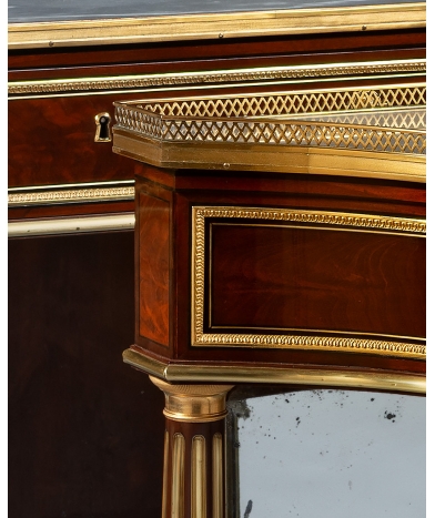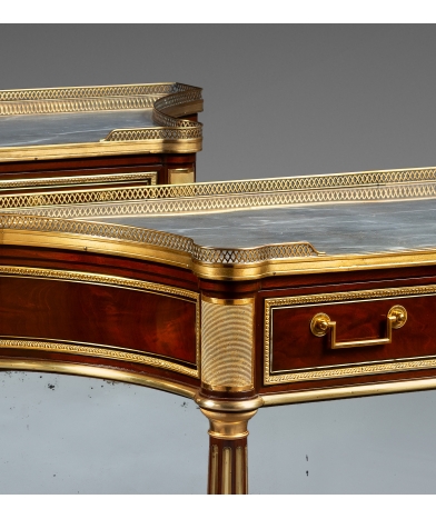 This pair of highly architectural consoles testifies to the new style and high standards of the greatest cabinetmakers in the final years of the Age of Enlightenment. The perfection of form and proportion, the quality of the materials used and the sophistication of the features bring these consoles close to the production of Adam Weisweiler Maître in 1778.