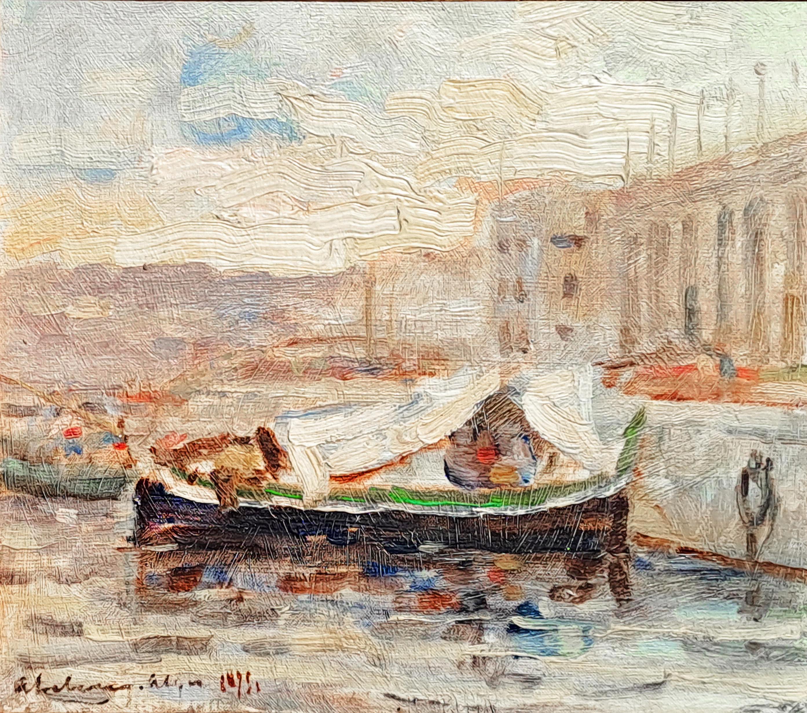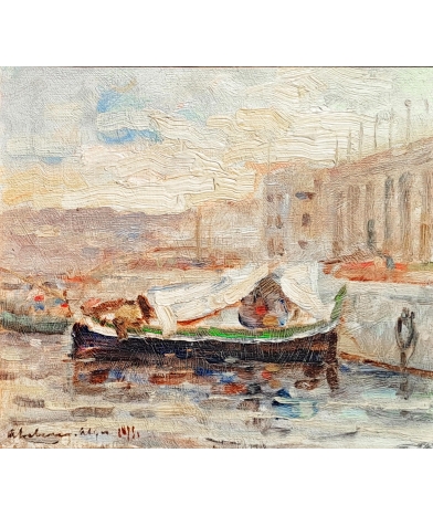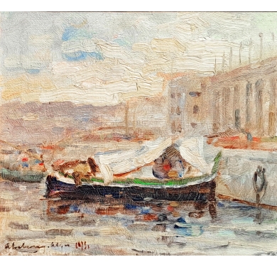 Notre tableau : Il s’agit d’une œuvre datant de la période la plus précoce et la plus recherchée pour Albert Lebourg. Il est à Alger en 1875 et prodigue déjà ses conseils à l’école des beaux-arts alors qu’il n’a que 27 ans. Absent de la capitale, et sans relations avec les impressionnistes qui participèrent aux premiers salons de ce mouvement naissant, Lebourg est à cette époque totalement visionnaire en adoptant naturellement une touche moderniste. La matière est posée en de larges aplats qui préfigurent le post impressionnisme.