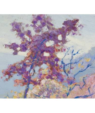Ce tableau de grand format représente le sujet emblématique de Madeline, la Creuse. Il s’agit d’une œuvre de très haut niveau, réalisée vers 1900, et comparable par sa composition et ses couleurs au tableau de Madeline conservé par le Musée d’Orsay. Il est important d’observer les détails de cette huile pour comprendre la puissance et la variété des couleurs ; Madeline a produit avec ce tableau un travail très réfléchi et abouti.