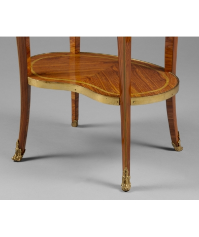 Jean-Pierre Dusautoy (1719-1800) est réputé pour ce type de table bien particulier dont il est certainement l’inventeur. Vers 1770, le renouveau du gout néoclassique apporte au mobilier français un style nouveau, qui met fin au rocaille Louis XV et remet au gout du jour la symétrie et l’équilibre. Il s’agit sans doute de la période du XVIIIème siècle français ou le raffinement atteint son paroxysme dans la production des grands maitres ébénistes.